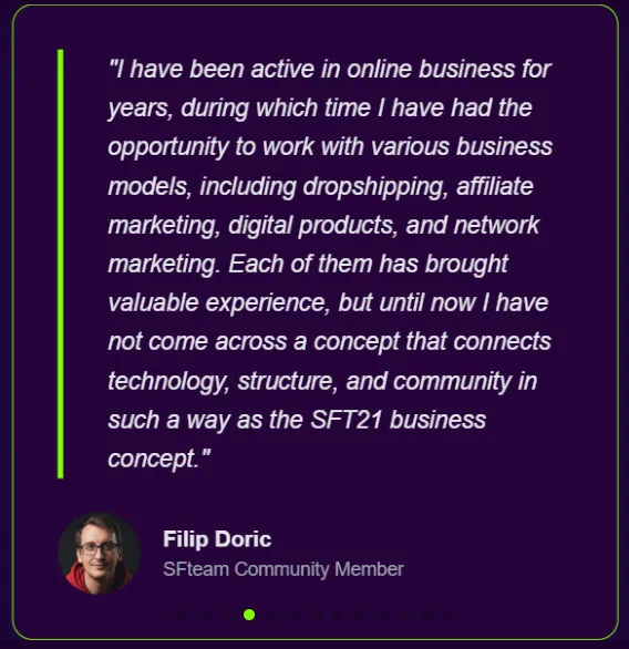 When I discovered SFT21, I realized this wasn’t just another online opportunity. It was a structured digital ecosystem built for the long term — not a trend, not a shortcut. A real business concept with real foundations.